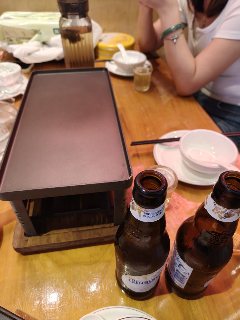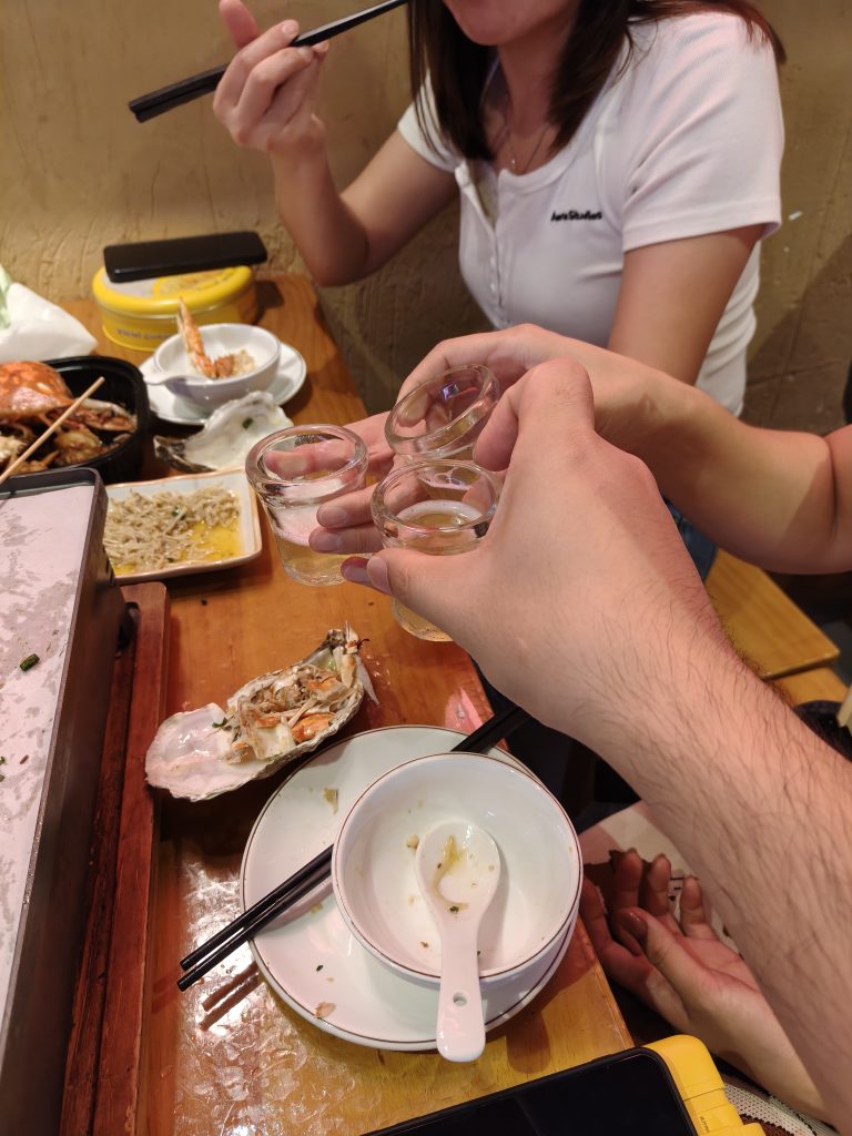 最终上了车,选了个湘西烧烤。进店里点了菜,等着晚晚到来。没想到谁都不让抱,大家只能跟她耍耍。很快烧烤来了,还让老板帮忙把螃蟹加热了一下,可惜的是螃蟹并没有想象中新鲜,还是带有一点点粉,果然是一分钱一分货。虽然大家都说好饱,烧烤还是吃得七七八八😄😄。竟然烧烤有了,总不能光吃不喝两杯。点了两瓶啤酒,让我们来举杯吧,我喜欢跟大家干杯的感觉!还跟晚晚干杯了,不过小美女可能不想跟老野坐一桌了,坐了一会就想走了,拜拜的时候,老快了!🤣🤣